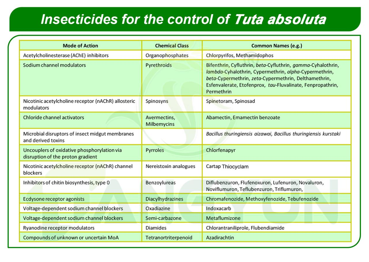 16. Use only insecticides registered for control of T. absoluta or lepidopteran leaf miners and always follow the directions for use on the label of each product.